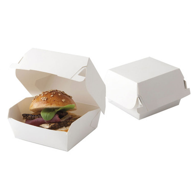 Applications "“Burger packaging made of cardboard is a true classic. Cardboard offers many possibilities and benefits when used as burger packaging. Hamburger boxes are easy to open and can also be resealed. Cardboard can be printed and branded just the way you want to market your product through the burger packaging: mouthwatering quotes and visuals will sell your burger. Besides from these specific benefits related to burger packaging, cardboard is a sustainable material and can be recycled into new hamburger boxes several times without losing its strength."
