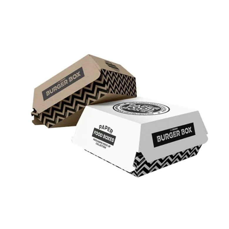 Hamburger Box is usually box type obtained from micro (E Wave) cardboard or Pristol carton.